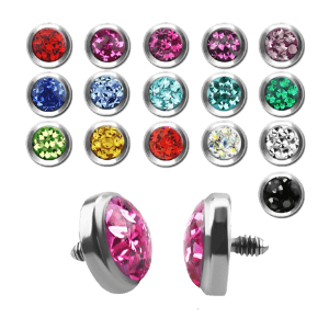 These single entry point wholesale piercing jewelry composed of the G23 titanium ASTM F136, 316L surgical steel, or 14K gold dermal plate that is placed under the skin and a gem or crystal top can be pierced anywhere on the body where there is enough skin. These wholesale body jewelry sold in the USA unique piercings seem to float on the skin’s surface and are more permanent than other piercings. The jeweled attachment can be changed easily with a large variety to choose from.