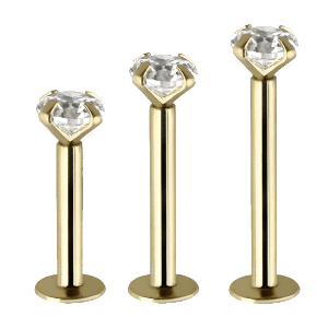 Gold is one of the most precious metals and our nose piercing collection includes nose bones, L-shaped nose screws, Bend-It-Yourself nose studs, and seamless rings in 10K and 14K solid gold. 14K white and rose gold nose jewelry is also sold as well as threadless gold eyebrow bananas, threadless labrets, and dermal piercing top attachments.