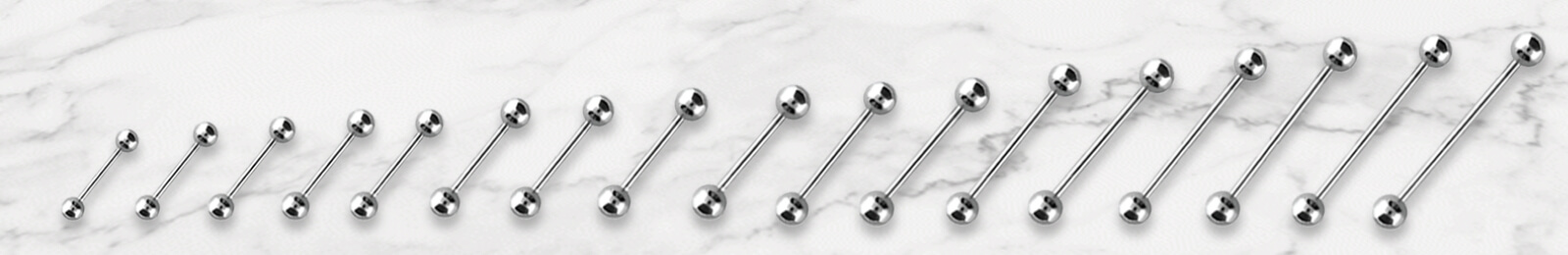 International Silver offers wholesale body jewelry in a full range of sizes. Barbells are supplied in a large range of lengths from ¹⁵/₆₄” (6mm) to 2” ³/₆₄ (52mm). Nose rings are supplied in different diameters of ¹⁵/₆₄” (6mm) to ⁵/₈” (16 mm).