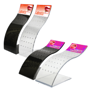 Buying wholesale body jewelry on displays allows the professional piercer to keep their bulk body jewelry stock organized while showcasing products. Various display holders, such as strong acrylic stands, trays, and display boxes with clear tops, are sold with premium wholesale piercing jewelry such as nose jewelry, earrings, barbells, eyebrow bars, plugs, belly rings, single point piercings, labrets, and tongue bars. Empty and custom-made displays are also sold.