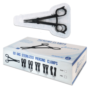 For the convenience of professional piercers, a large selection of 316L surgical steel and titanium ASTM F136 sterilized piercing jewelry is supplied that has been Ethylene Oxide (EO) gas treated and sold in vacuum-sealed packages. These piercing supplies are used in initial piercings and some are sold in kits containing the appropriate piercing needle. Piercing clamps and EO gas sterilized needles are also supplied as bulk body jewelry.